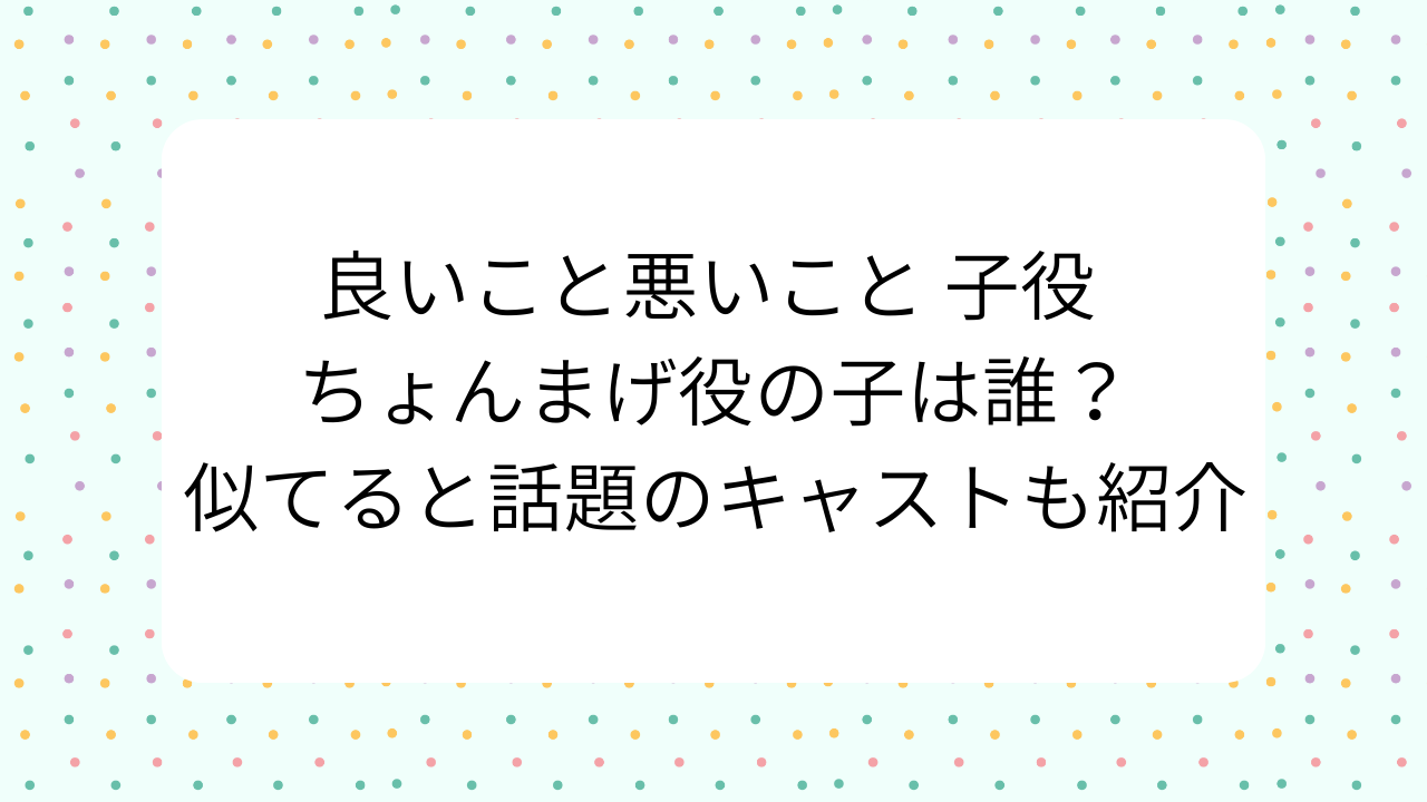 この記事では、ちょんまげ役の子役のプロフィールや出演歴、大人キャストとの対応関係、そしてビジュアルの類似点について詳しく解説します。